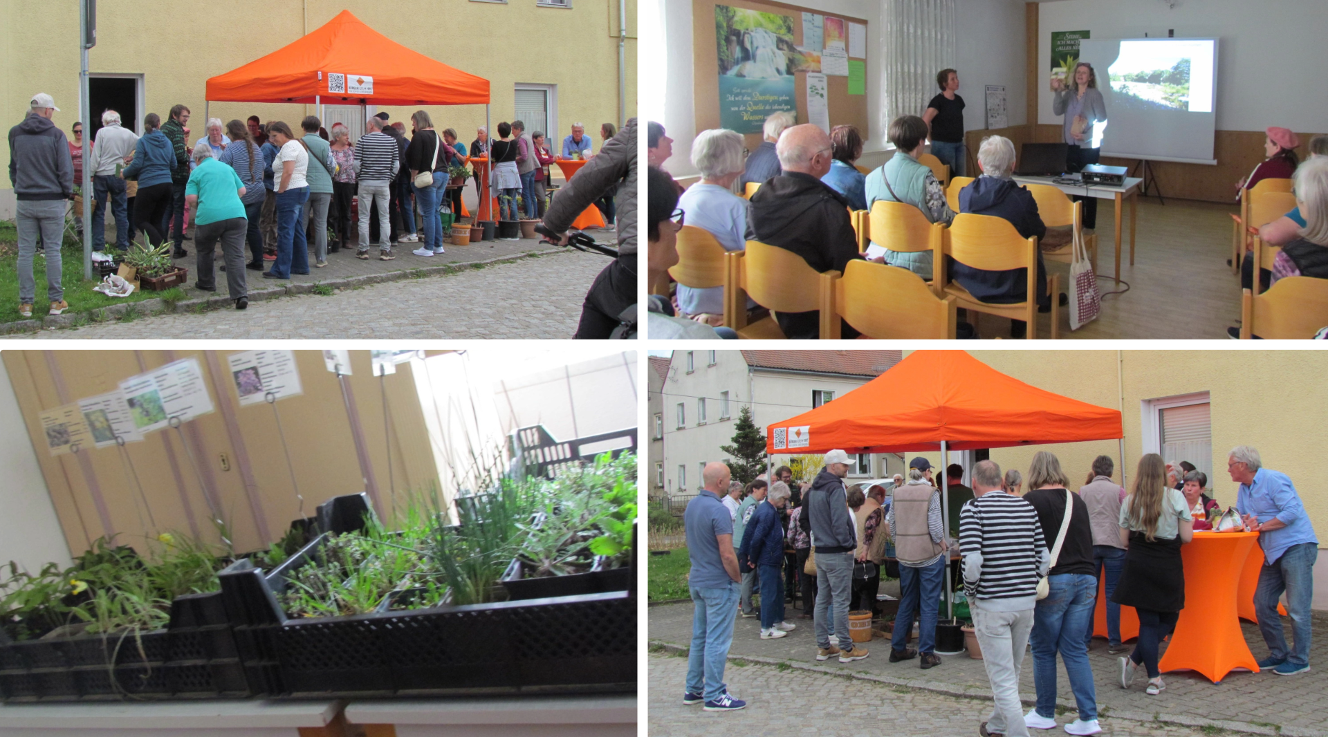 Mit eindrucksvollen Fotos wurde gezeigt, welche heimischen Wildpflanzen mit dem Klimawandel klarkommen und welche Herausforderungen auf uns zukommen. Mit kleinen Maßnahmen und der richtigen Auswahl an Pflanzen für den jeweiligen Standort (Pflanzen für sonnige/trockene Stellen oder schattige/trockene Stellen) sowie Etagenbepflanzungen kann man sich das Leben im eigenen Garten erleichtern. In vielen Fällen spart man sich das Gießen ein Jahr nach der Pflanzung komplett. Es versteht sich von selbst, dass sich Pflanzen am richtigen Ort besser entwickeln und mehr Schatten spenden. Während des Vortrages nahm sich die Referentin viel Zeit um die Fragen der Besucher zu beantworten. Im Anschluss des sehr guten und interessanten Vortrages konnten Pflanzen, die mit wenig Wasser auskommen, käuflich erworben werden.